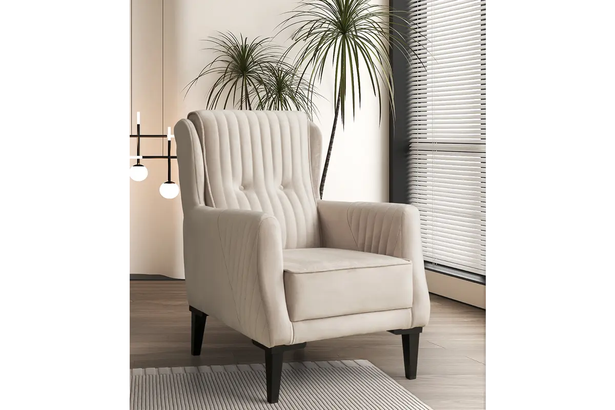 Berjer: Yüksek sırt, dikey kapitone kollar ve sırt, rahat oturum