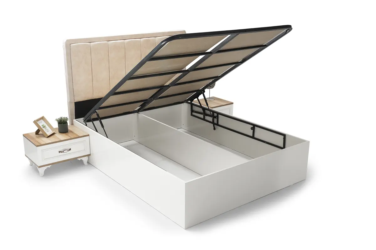 ✦ Karyola baza seçeneği güçlü mekanizma ve bölmeli iç hacimle yorgan, tekstil ve valizleri düzenli tutar.