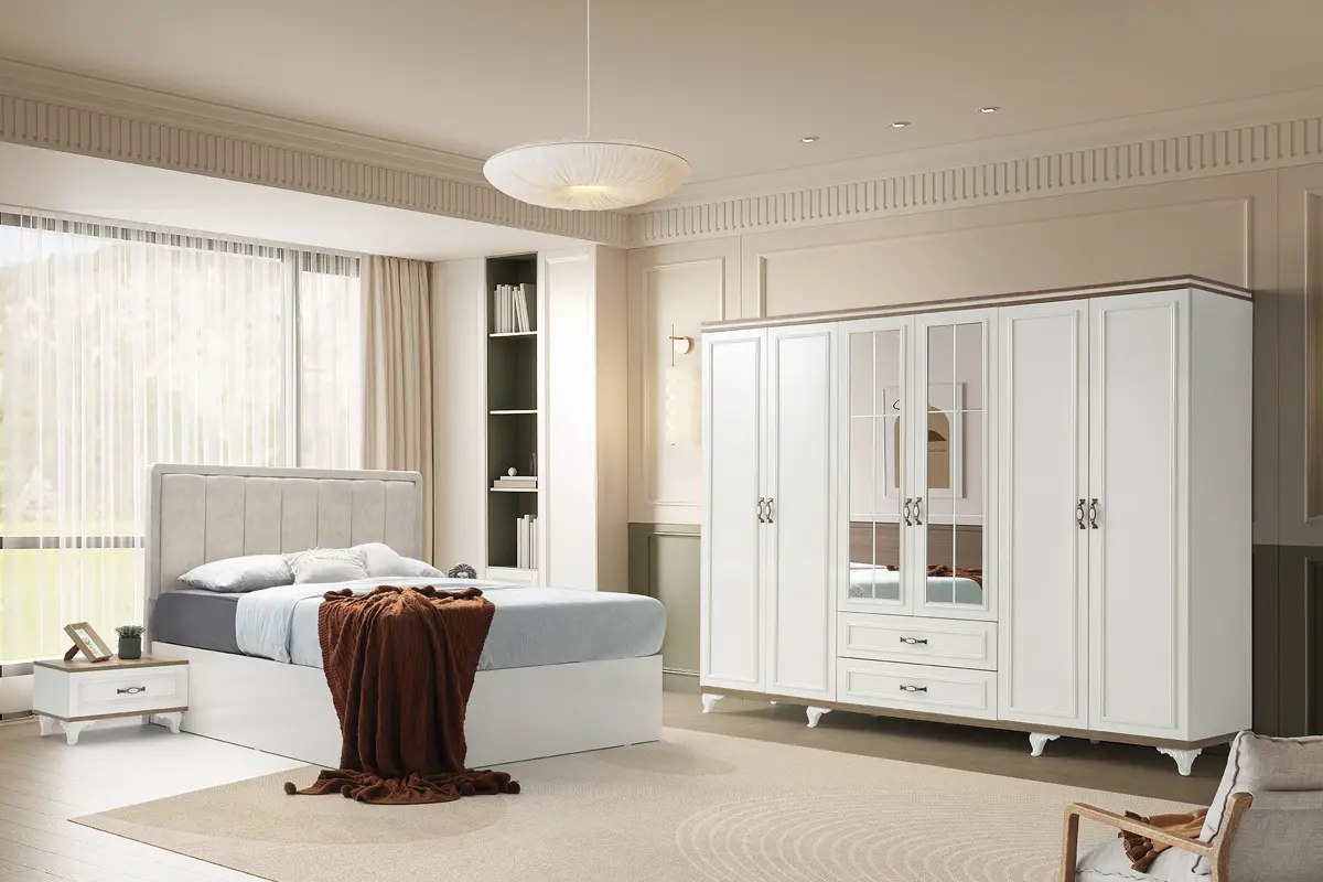 ✦ Takım içeriği; Gardırop + Şifonyer ve Aynası + 2 adet Komodin ve Başlıktan oluşmaktadır.
