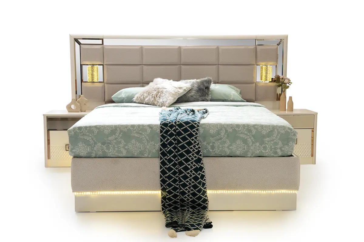 💡 Entegre Aydınlatma Özelliği: Başlık bölgesinde yer alan LED ışıklar yatak odanıza sofistike bir atmosfer katar.