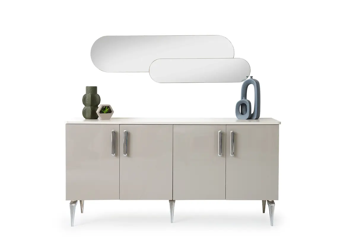 Şifonyer + aynası: Minimal ön yüzeyler, stabil gövde; günlük kullanımda pratik saklama.