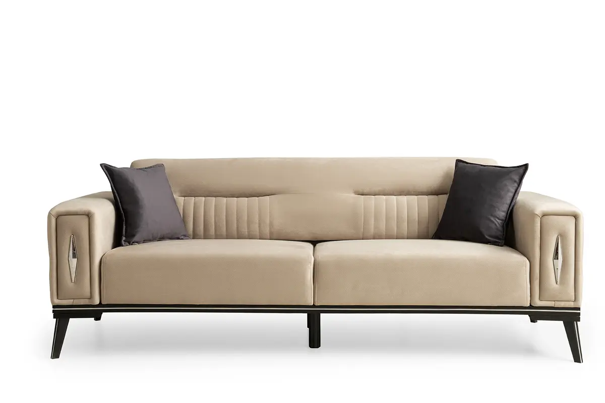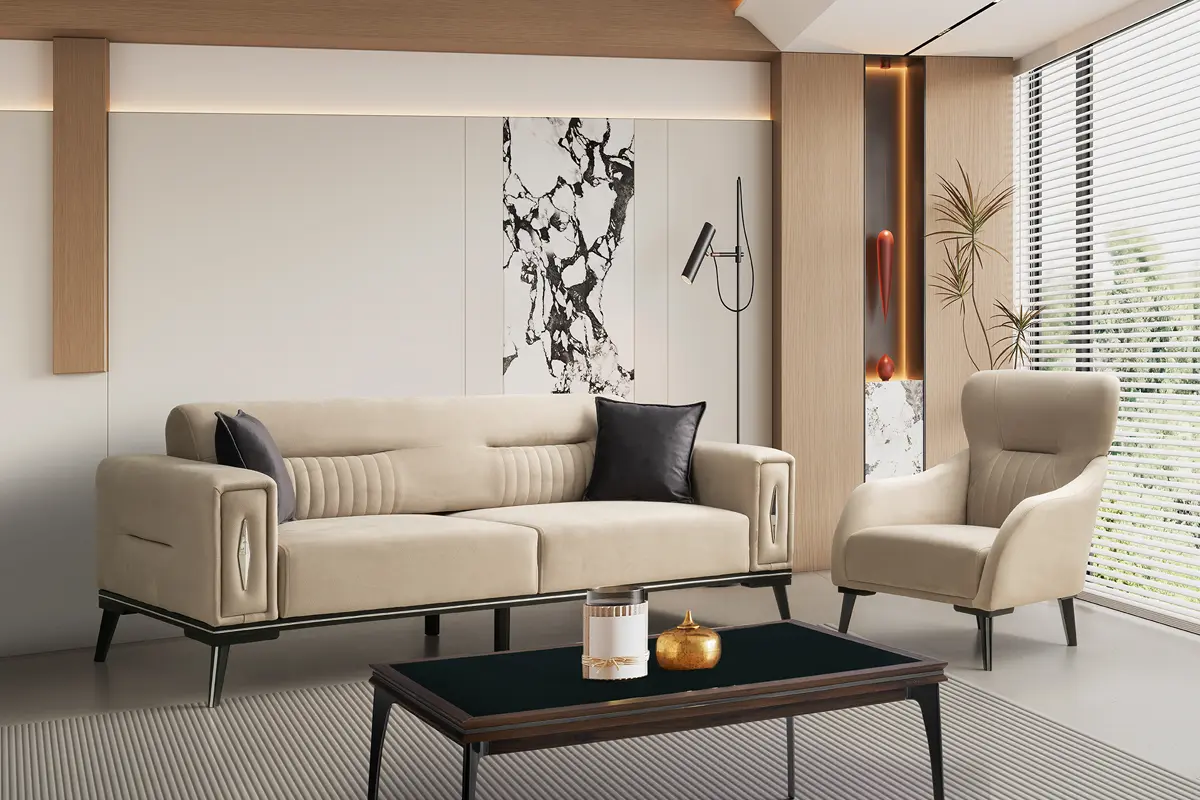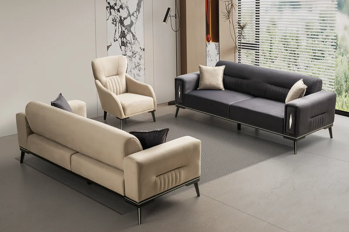 2 adet 3’lü koltuk: Orta-yumuşak oturum sertliği, yüksek yoğunluklu sünger, formunu koruyan iskelet; günlük kullanımda konfor ve dayanıklılık.