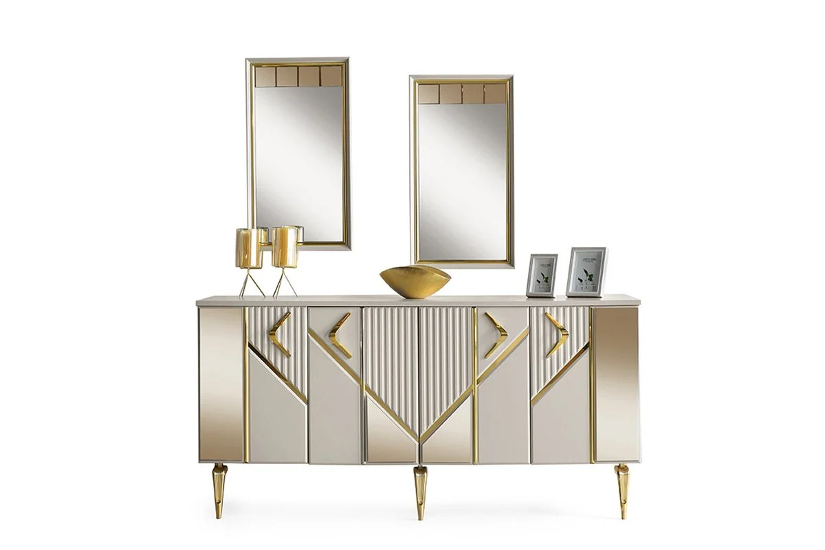✦ Konsol kapaklarındaki ayna ve kabartma geçişleri, ışığı yansıtarak derinlik ve ferahlık oluşturur.