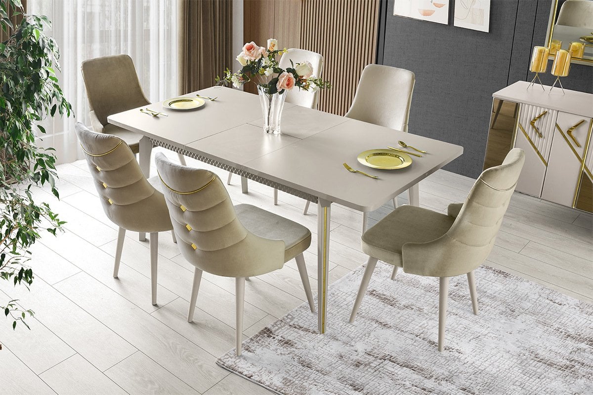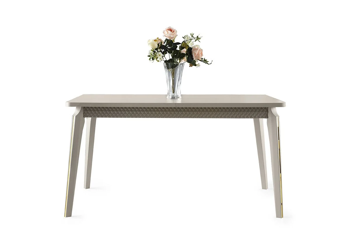 ✦ İnce formlu masa ve zarif konik ayaklar, modern-neo klasik çizgiyi şık şekilde tamamlar.