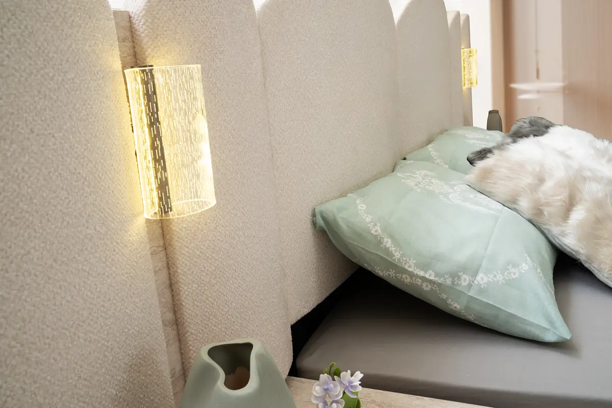 • Krem–ahşap–şampanya metal uyumuyla modern lüks ve sıcak atmosferi aynı anda sunar.