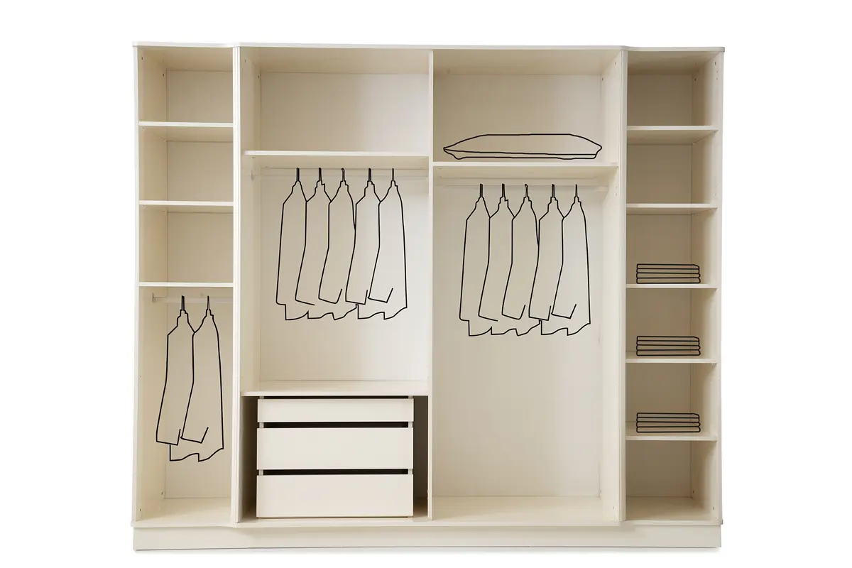 • Geniş depolama: Dolap içi düzenleyiciler, pantolon askıları, teleskopik raf sistemleri.