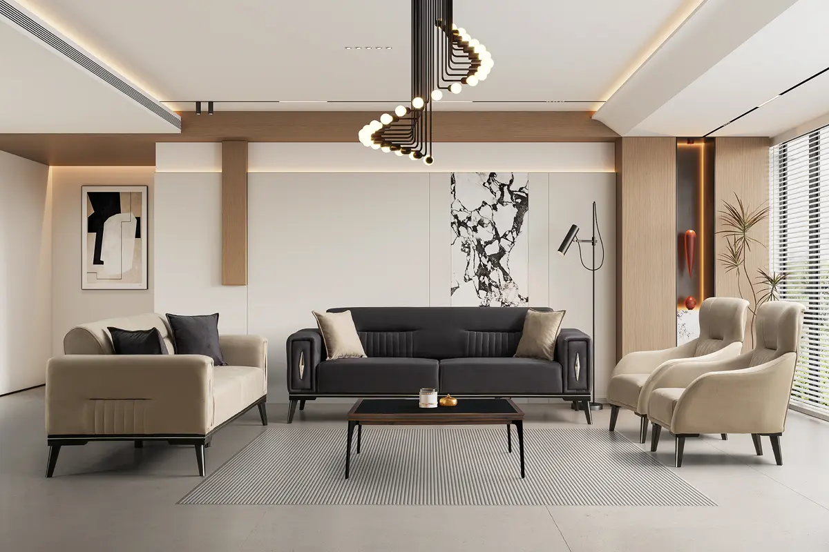 • Stil bütünlüğü: Salon, yatak odası ve yemek odası için eşleşen seriler.