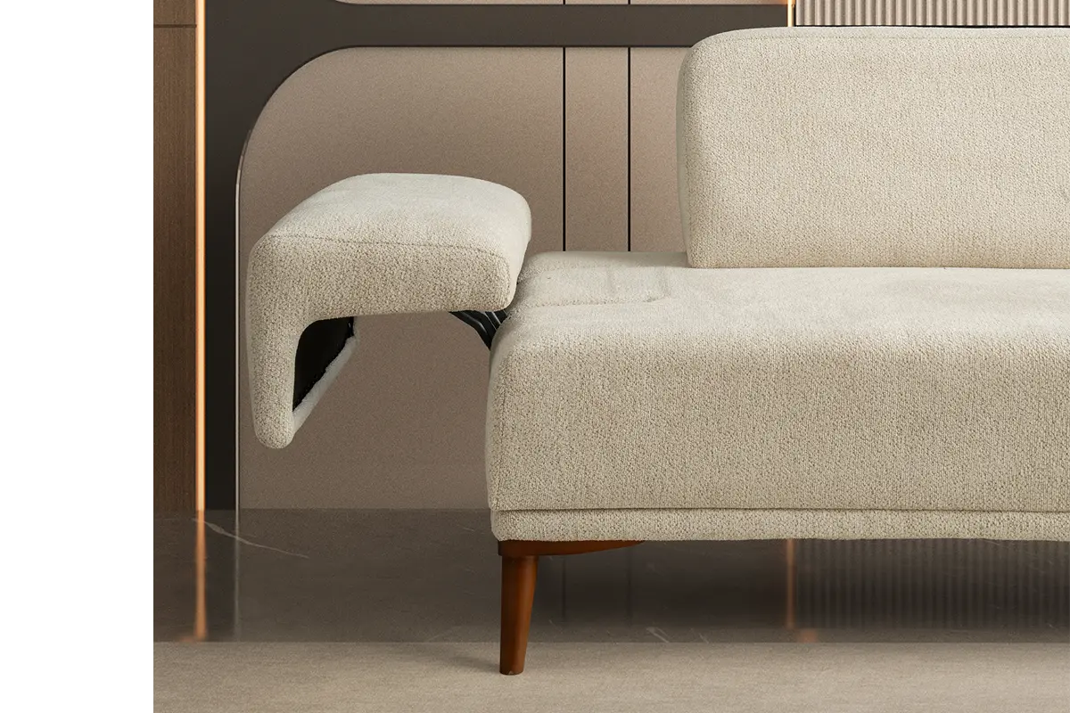 Geniş oturum pedleri, yumuşak yuvarlatılmış kol yastıkları ve sade dikiş hatları ile Relax, salonda sakin ve sofistike bir atmosfer oluşturur. Kol bölümündeki akıllı mekanizma yatay konumda uzanma desteği sağlar; seçili sırt minderleri ileri-geri hareket ederek düz bir platforma dönüşür ve günübirlik yatak ihtiyacına pratik çözüm sunar.