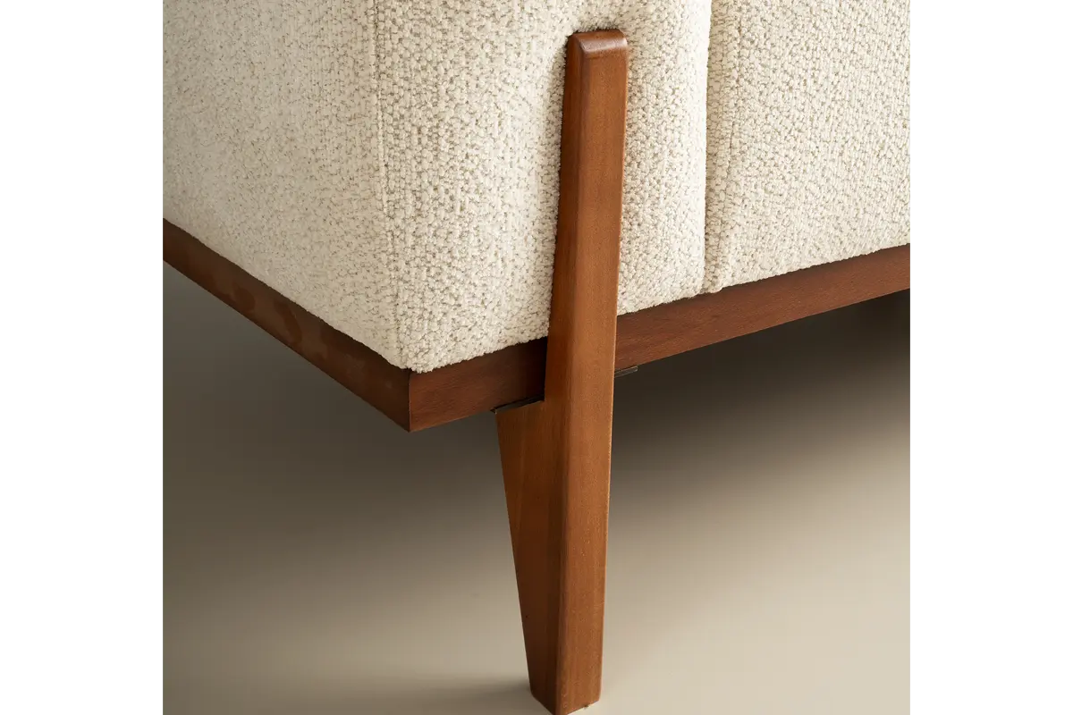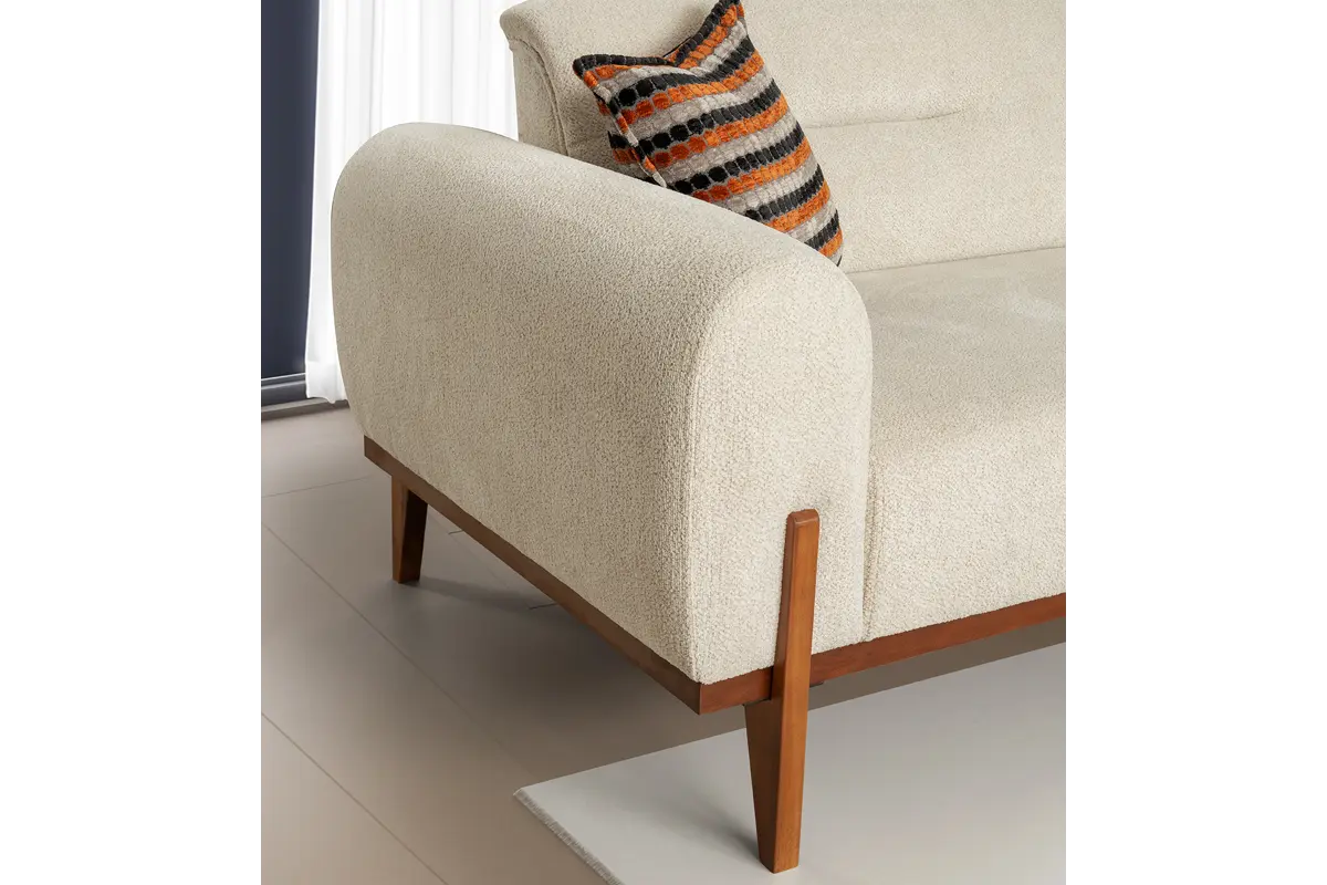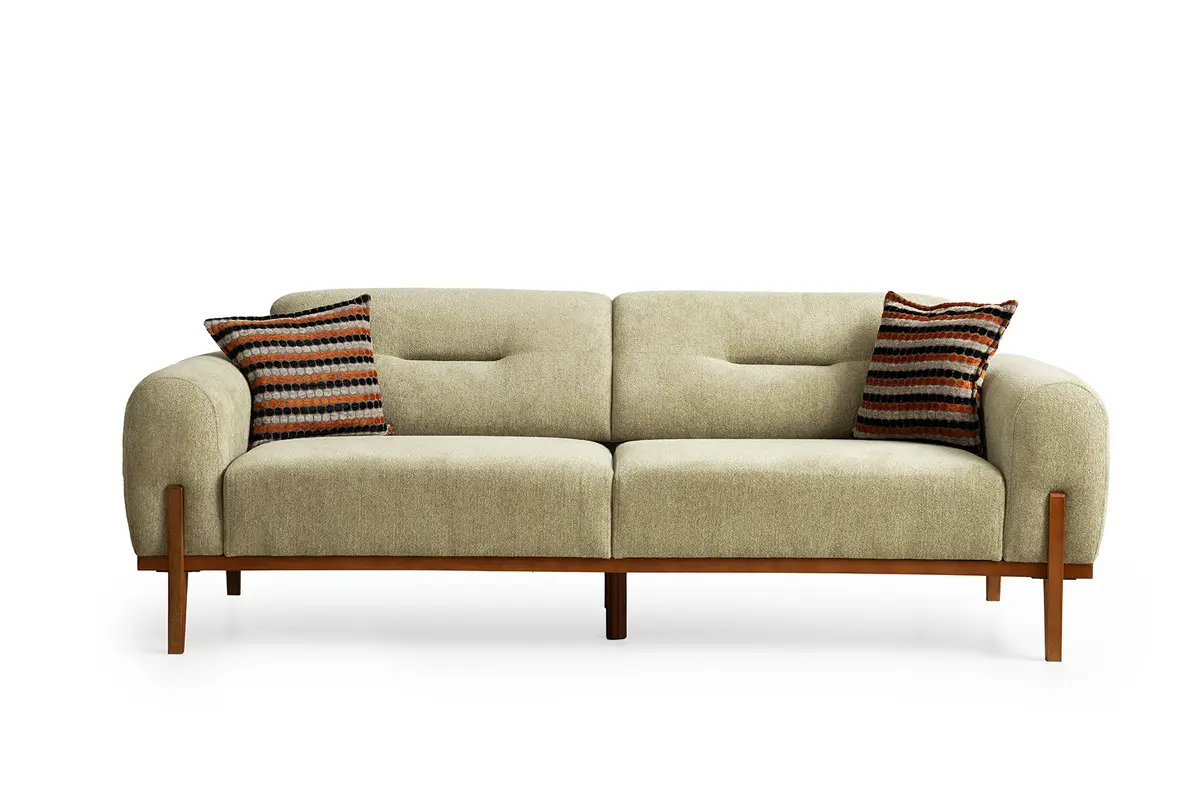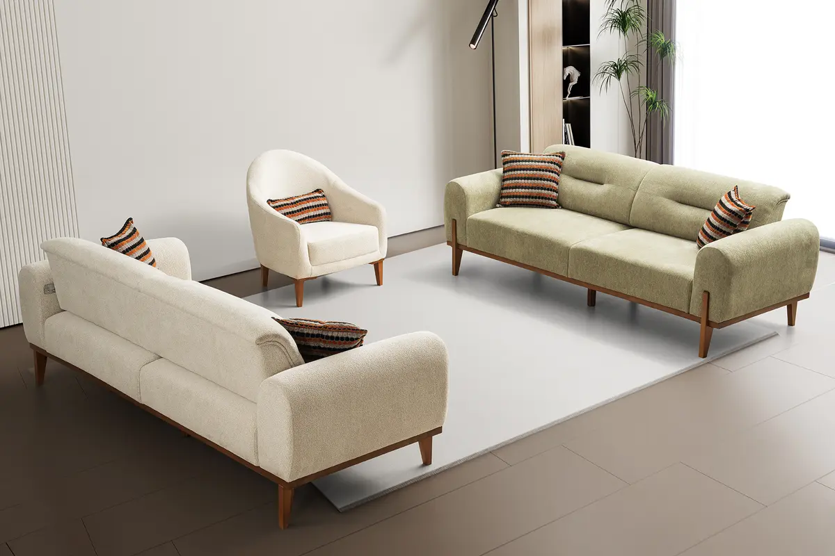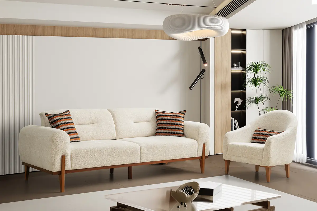 Rota Koltuk Takımı, skandi-modern yalınlık ile sıcak ahşap dokuyu birleştirir. Fırınlanmış gürgen ağacından üretilen iskelet yapısı uzun ömür ve stabilite sunarken, 34 DNS yoğunluklu oturum süngeri günlük kullanımda çökme yapmadan dengeli yumuşaklık sağlar. Masif ahşap çerçeve ve yere temas eden konik ayaklar, yerden yüksek kurgu sayesinde alt temizliğini son derece pratik hale getirir.