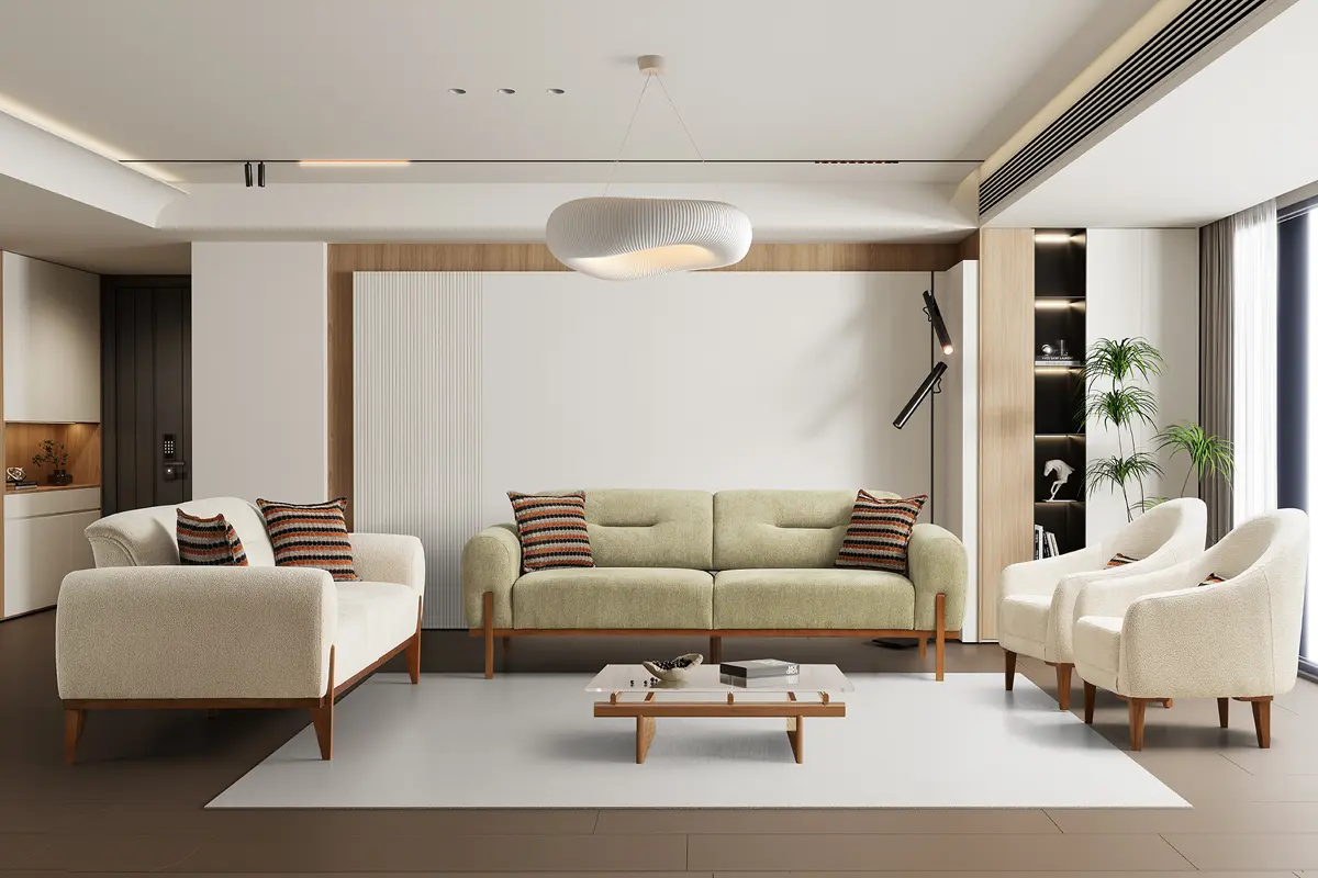Koleksiyonlarımızda doğal meşe, ceviz ve kireçlenmiş yüzeylerin yanında, soft dokuya sahip kumaş ve deriler kullanılır. Krem, gri, adaçayı ve kiremit gibi sakin tonlar, evin bütününde uyum yakalamanıza yardımcı olur. Silinebilir ve leke tutmayan kumaş seçenekleri, günlük kullanımda pratiklik sunar. Böylece salonunuzdan çalışma odanıza kadar aynı dilde, akıcı bir dekorasyon oluşturabilirsiniz.