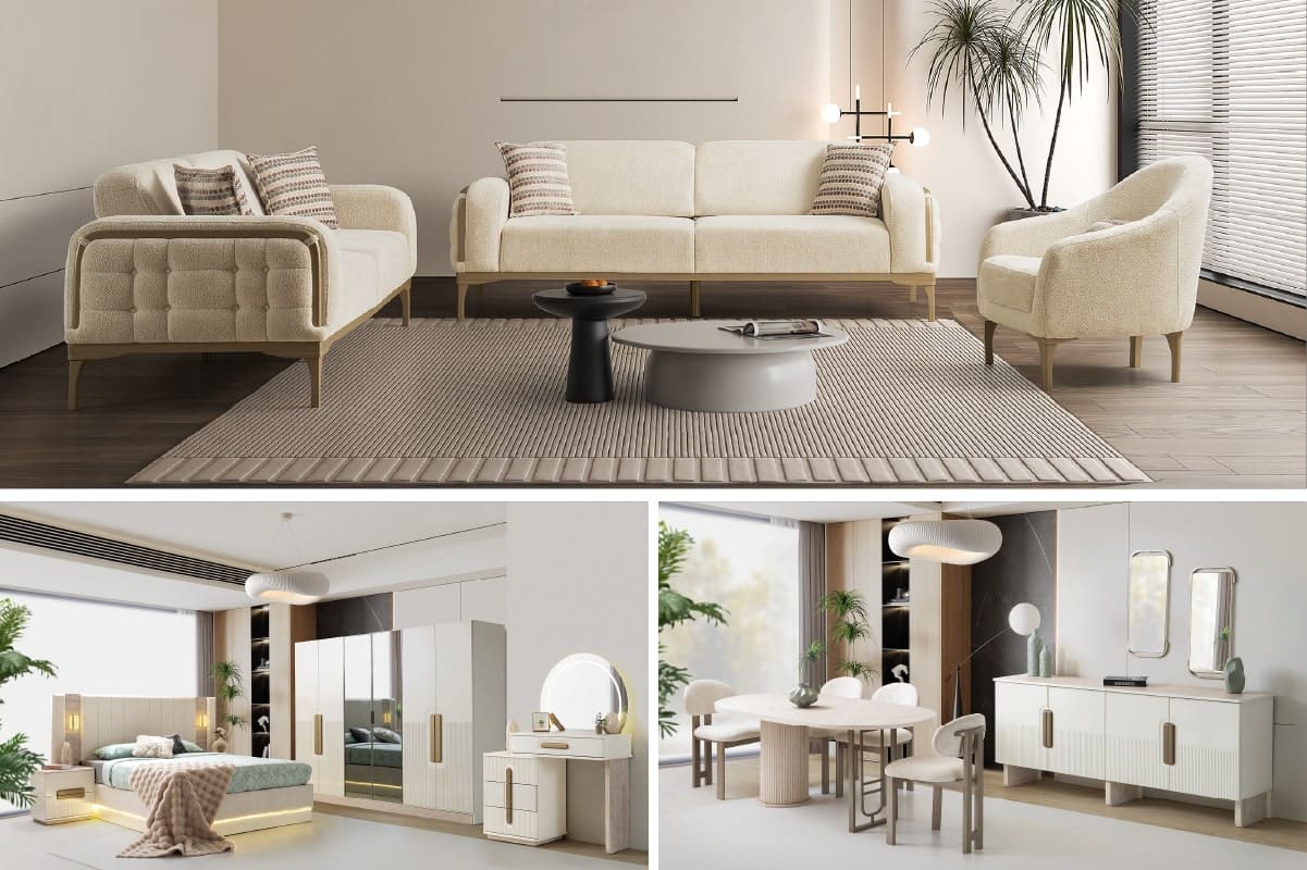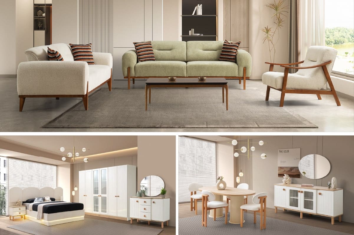 • Koleksiyon bütünlüğü: Aynı stil dilini farklı odalara taşıyan renk ve form uyumu.