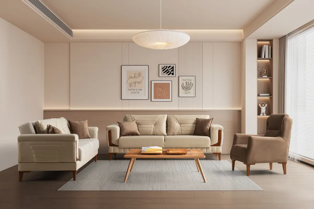 • Doğal: Sıcak ahşap tonları ve dokulu kumaşlarla zamansız estetik.