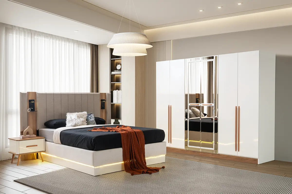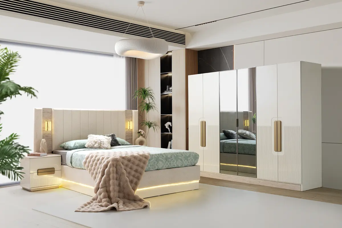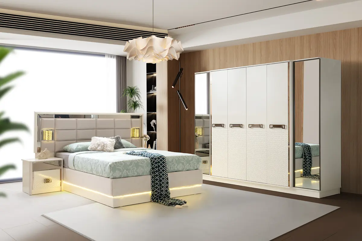 Netroom Mobilya yatak odası koleksiyonları, düzenli bir yaşam ve kaliteli uyku için düşünülmüştür. Sürgülü kapaklı geniş dolaplar, bazalı yatak alternatifleri, akılcı iç bölmeler ve sade komodin-şifonyer kombinleri küçük alanlarda dahi maksimum verim sağlar. Yumuşak dokular ve doğal tonlar, odanızda dingin bir atmosfer oluşturur. Ölçü rehberleri ve ürün sayfalarındaki detaylı görseller, odanıza en iyi uyumu yakalamanız için pratik bir yol sunar.